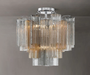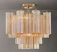 The captivating Addess Lighting Collection is a modern-day interpretation of the iconic mid-century Tronchi chandelier. Inspired by its predecessor's sleek lines and geometric shapes, the Addess features a polished nickel or Aged Brass metal frame that exudes sophistication and style. Its unique design showcases transparent tiers of textured Tronchi glass tubes, forming a mesmerizing 5-point rounded star shape. Choose from a range of glass colors, including clear, amber, smoke, and white, or the stunning Autumn option, which features a captivating multicolor disposition of amber, clear, and smoke Tronchi glass. The Addess Lighting Collection offers various sizes and finishes, allowing you to find the perfect fit for your space while adding a touch of timeless elegance.